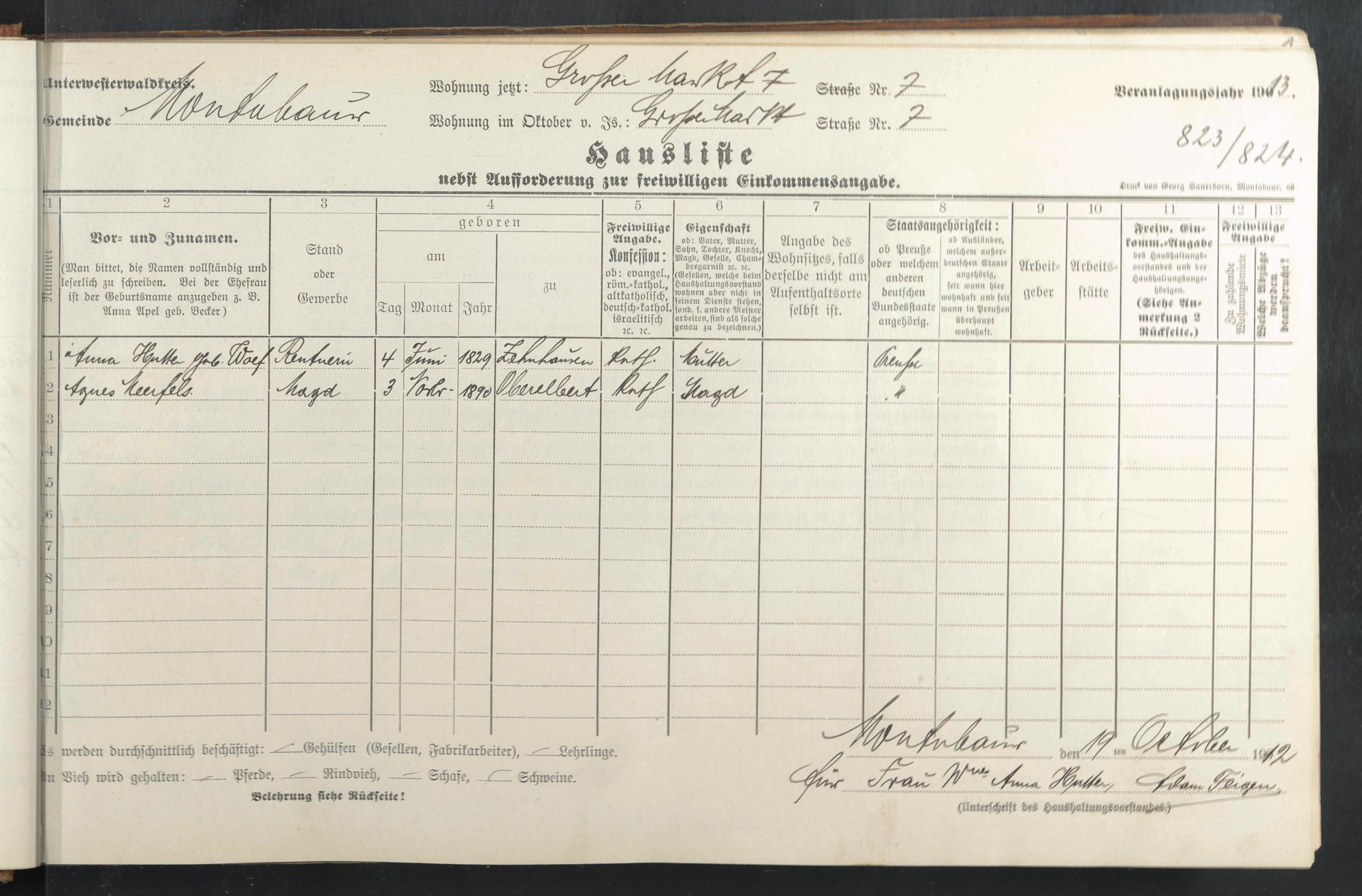 Haushaltsliste 1912 & 1913, Band I., Abt. 4 A 276