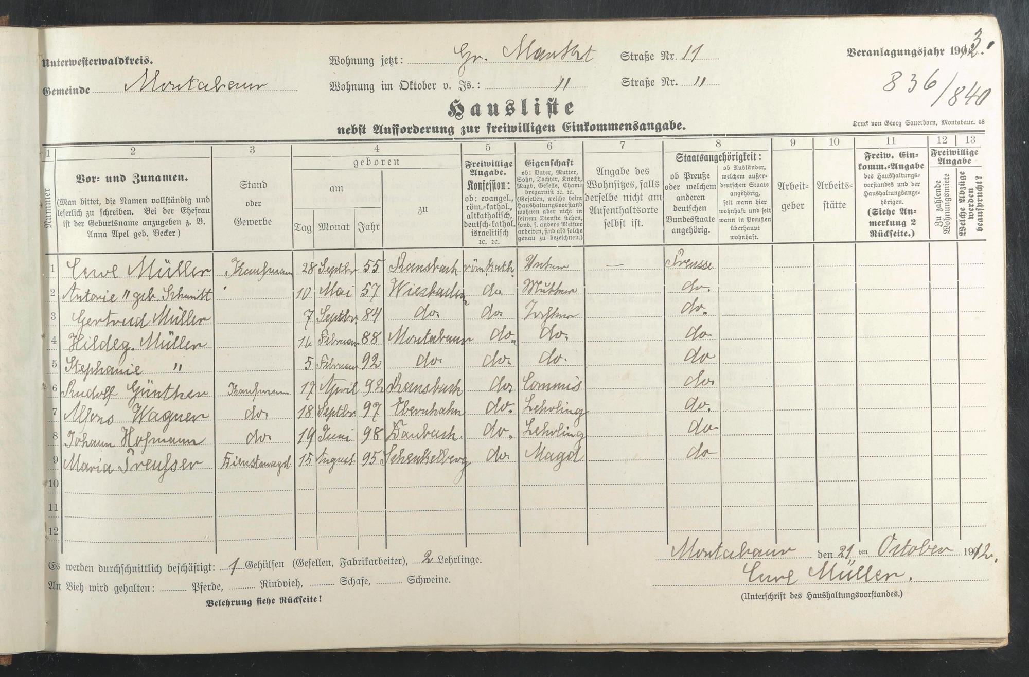 Müller, Carl Müller, Antonie geb. Schmidt Müller, Gertrude Pothmann, Hildegard geb. Müller Müller, Stefanie Günther, Rudolf Wagner, Alfons Hofmann, Johann Preußer, Maria