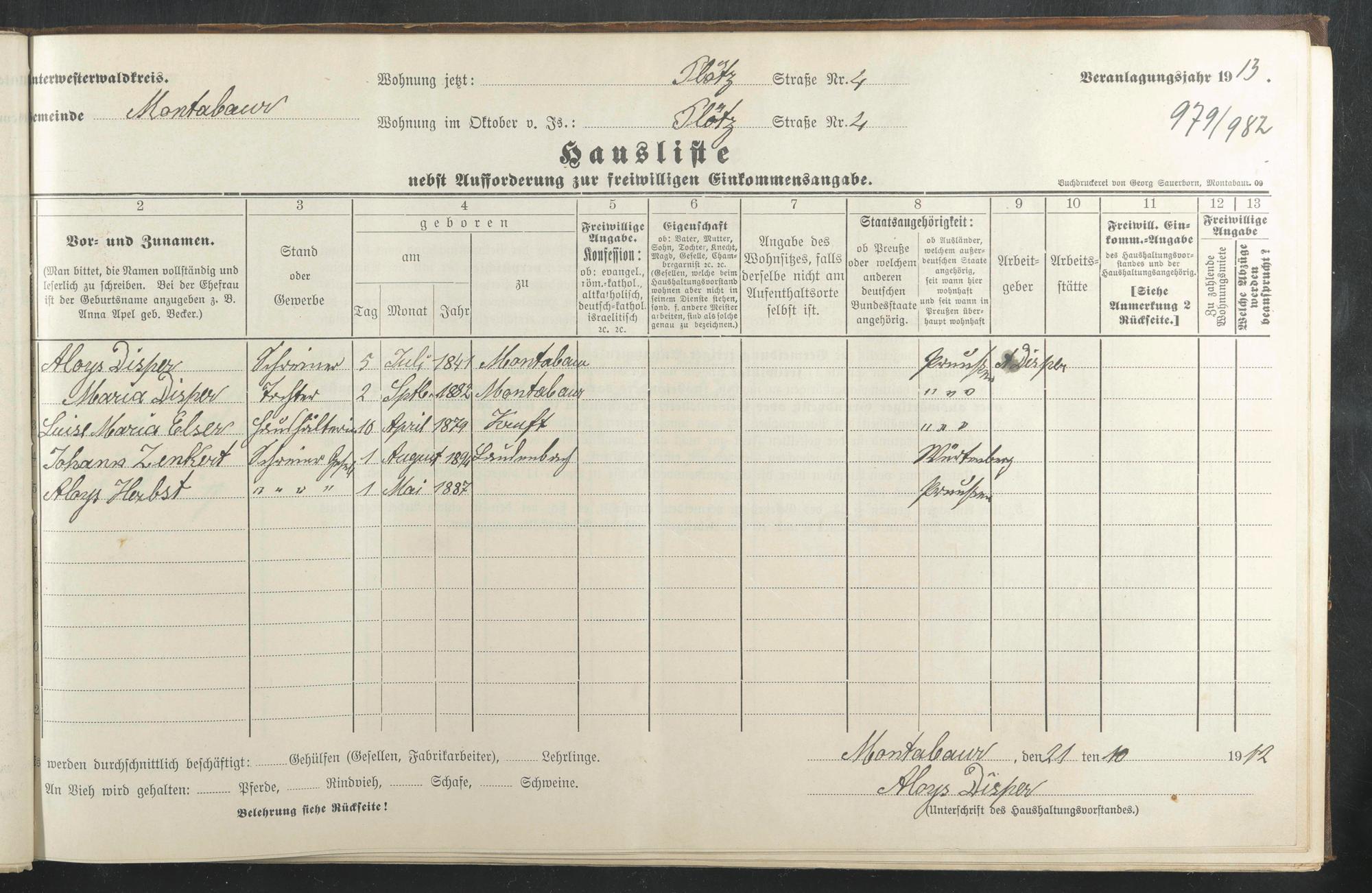 Haushaltsliste 1912 & 1913, Band II., Abt. 4, A 277