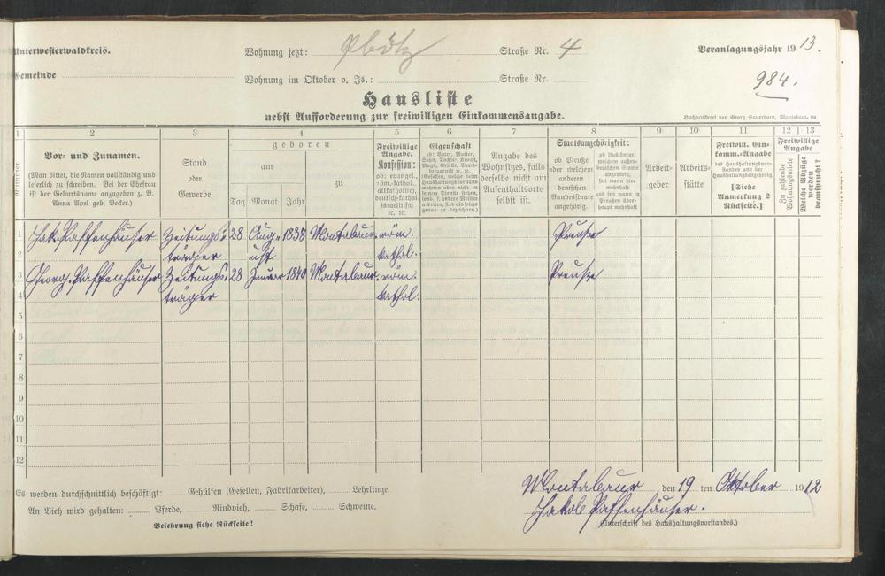 Haushaltsliste 1912 & 1913, Band II., Abt. 4, A 277