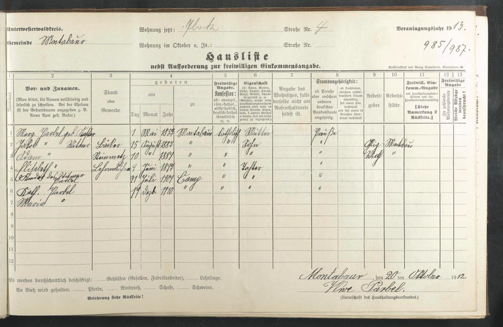 Parbel, Marg. geb. Kaster Parbel, Jakob Parbel, Adam Parbel, Elisabeth Parbel, Katharina Parbel, Louise Maria