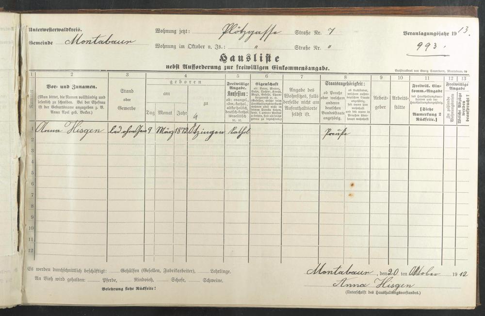 Haushaltsliste 1912 & 1913, Band II., Abt. 4, A 277