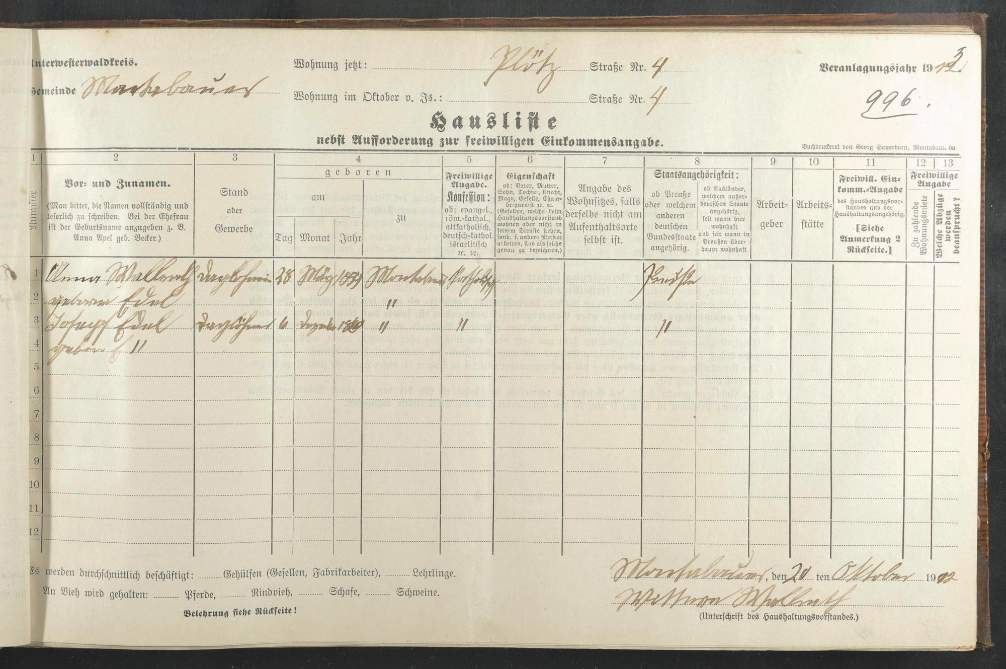Haushaltsliste 1912 & 1913, Band II., Abt. 4, A 277