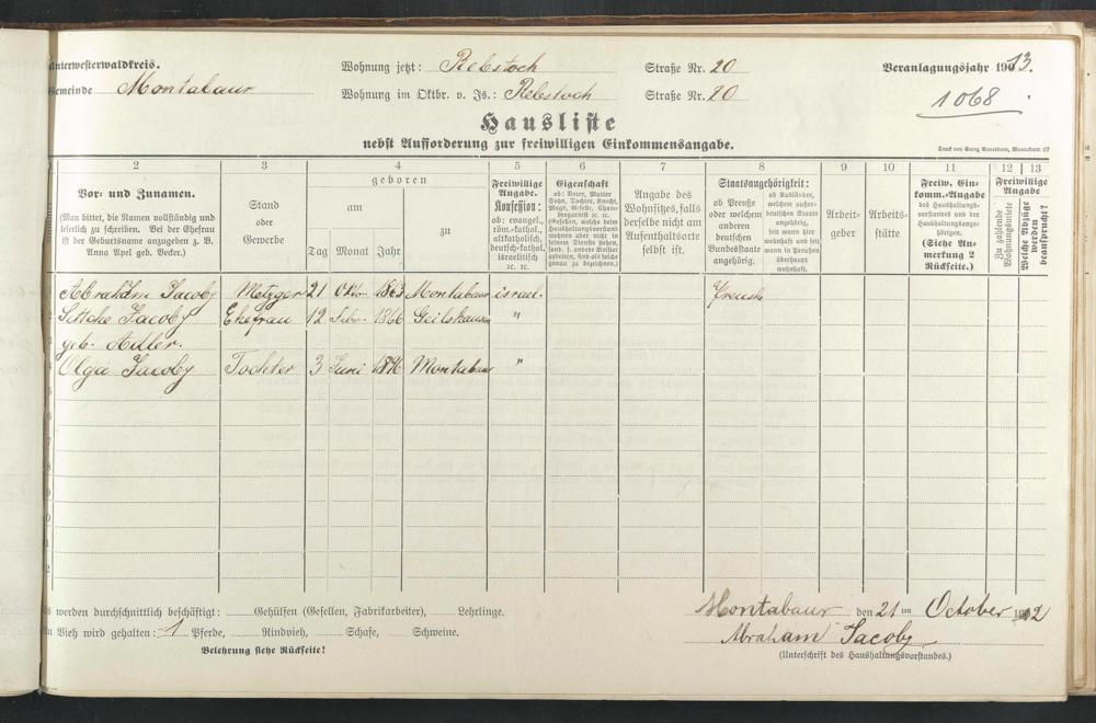 Haushaltsliste 1912 & 1913, Band II., Abt. 4, A 277