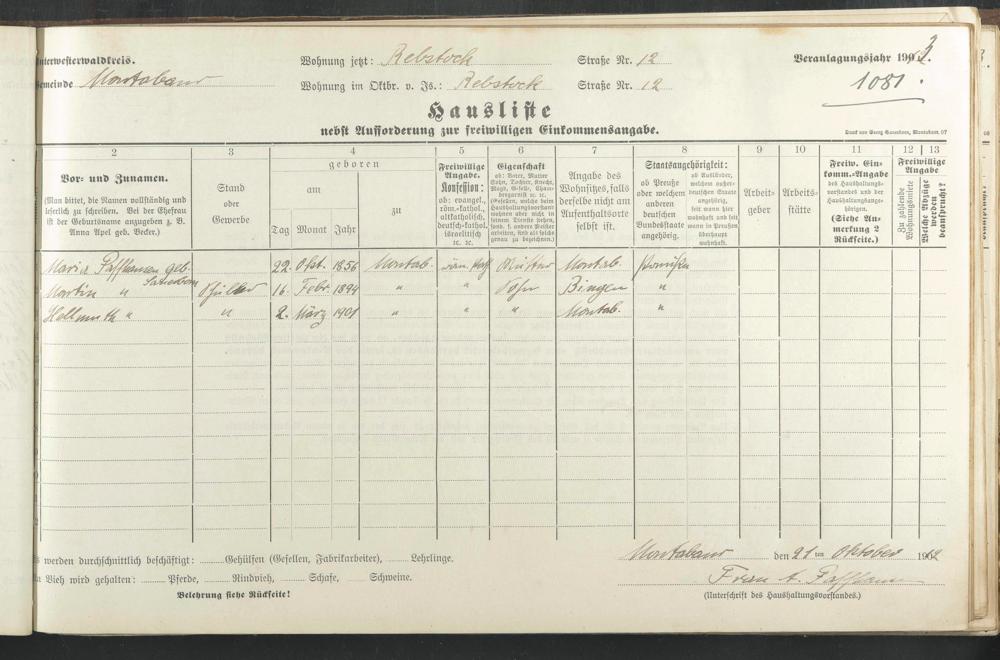 Haushaltsliste 1912 & 1913, Band II., Abt. 4, A 277