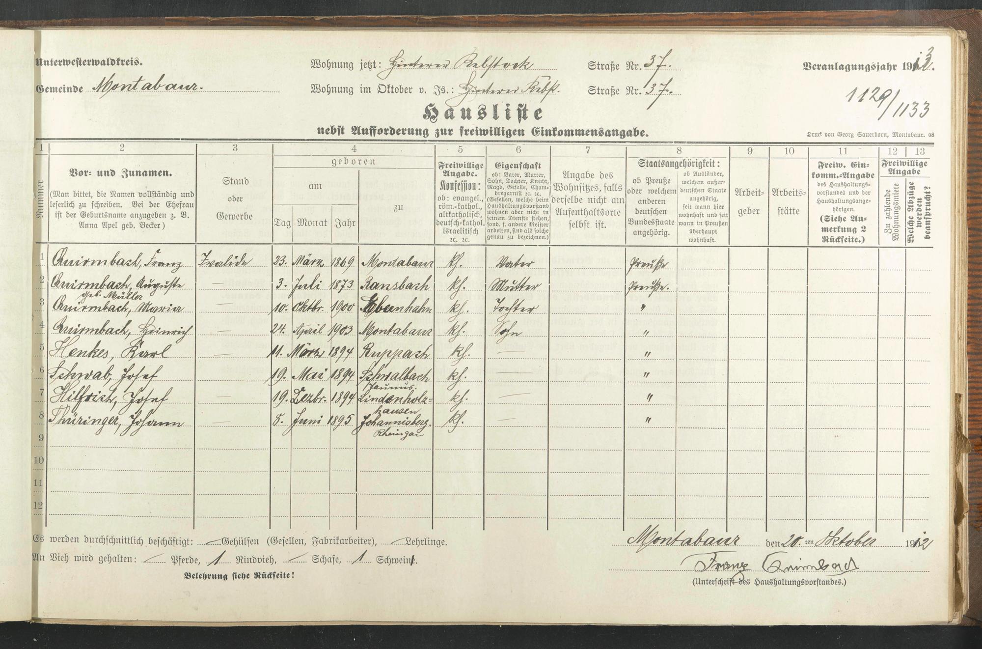 Quirmbach, Franz Quirmbach, Auguste geb. Müller Quirmbach, Maria Quirmbach, Heinrich Henkes, Karl Schwab, Josef Peter Hilfrich, Josef Thüringer, Johann