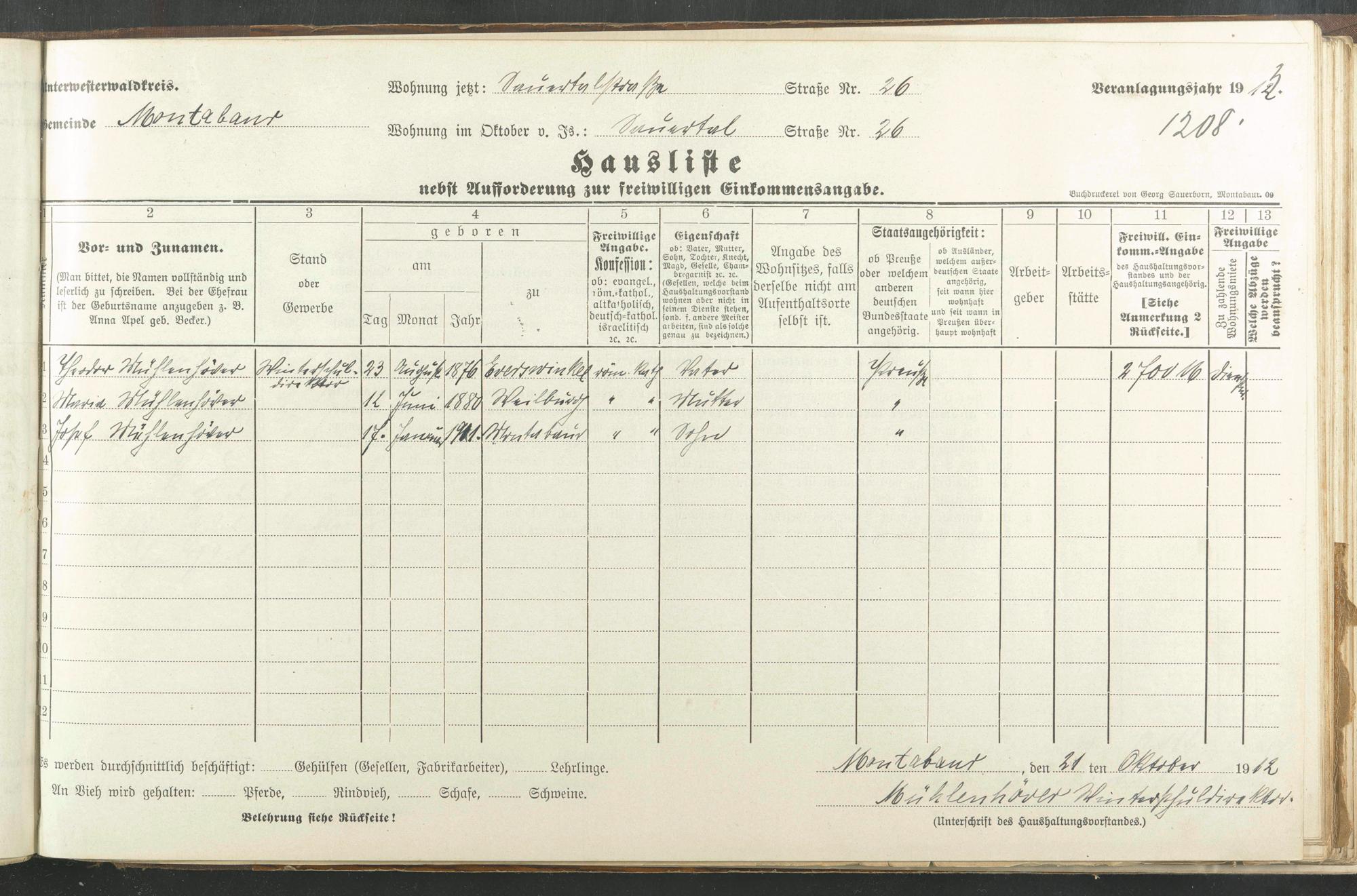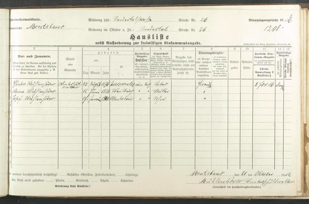 Haushaltsliste 1912 & 1913, Band II., Abt. 4, A 277