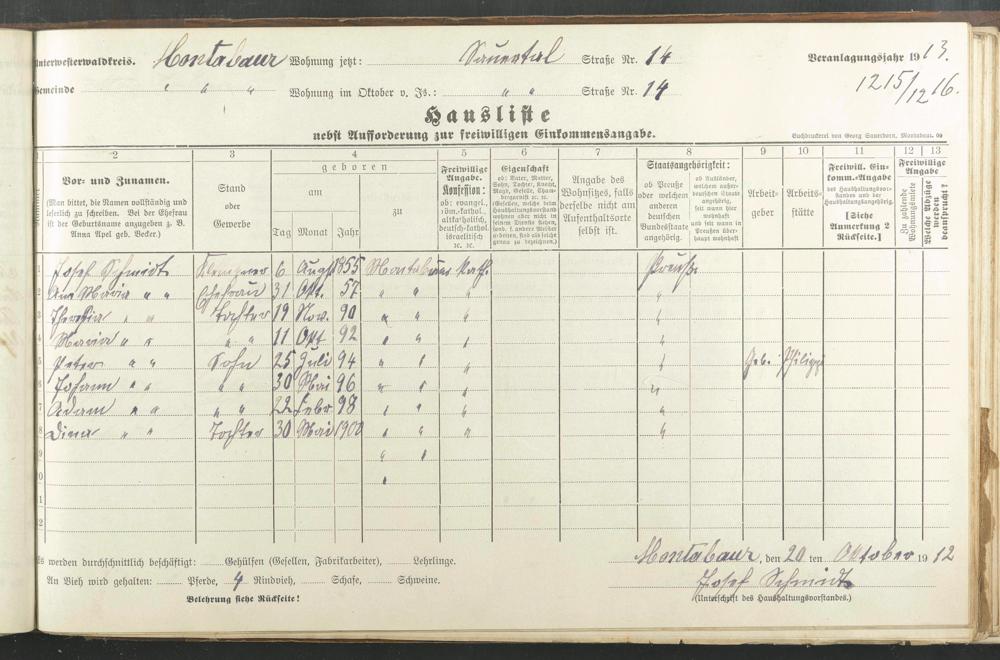 Schmidt, Josef Schmidt, Anna Maria geb. Roßbach Schmidt, Theresia Schmidt, Maria Schmidt, Peter Schmidt, Johann Schmidt, Adam Schmidt, Dina
