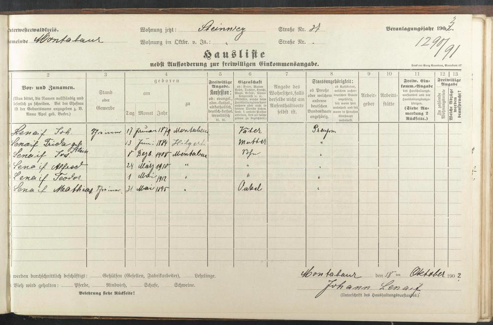 Lenaif, Johann Lenaif, Frieda geb. Klein Lenaif, Josef Lenaif, Alfred Lenaif, Theodor Lenaif, Mathias