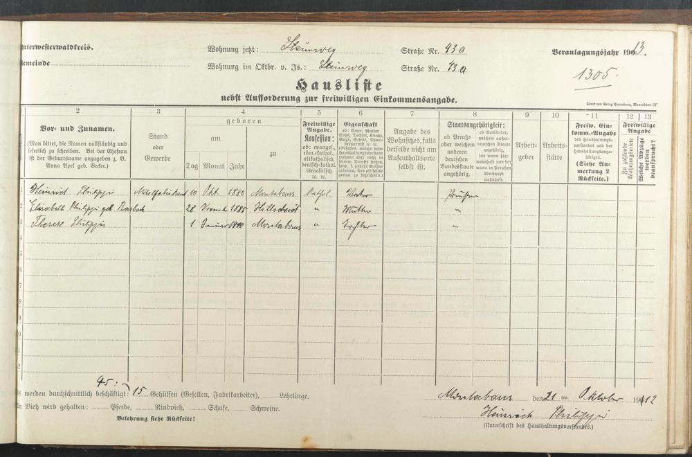 Haushaltsliste 1912 & 1913, Band II., Abt. 4, A 277