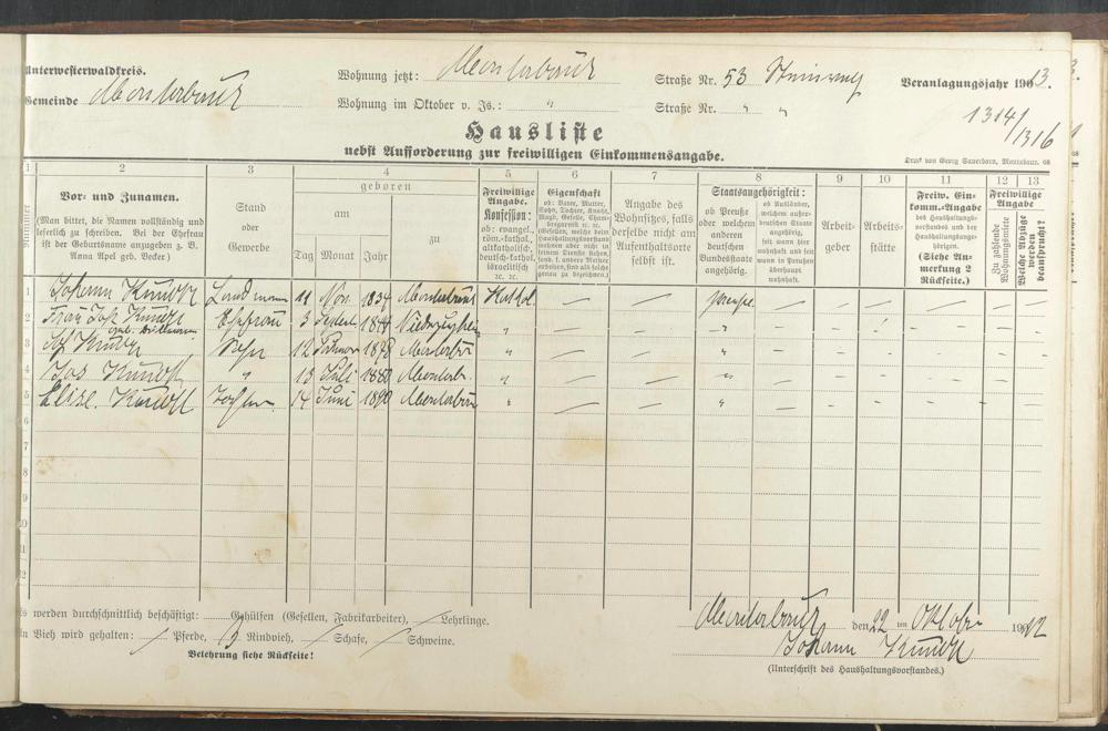 Haushaltsliste 1912 & 1913, Band II., Abt. 4, A 277