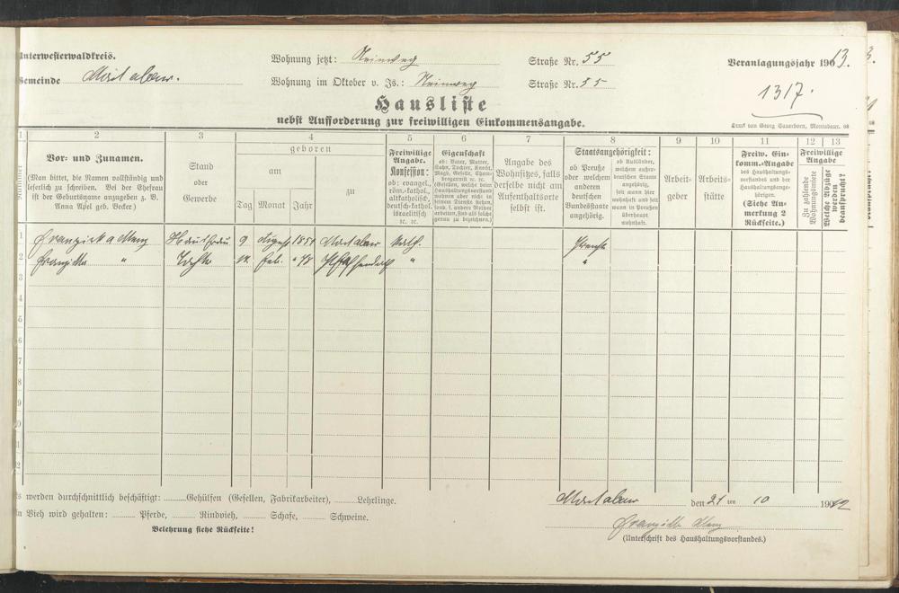 Haushaltsliste 1912 & 1913, Band II., Abt. 4, A 277