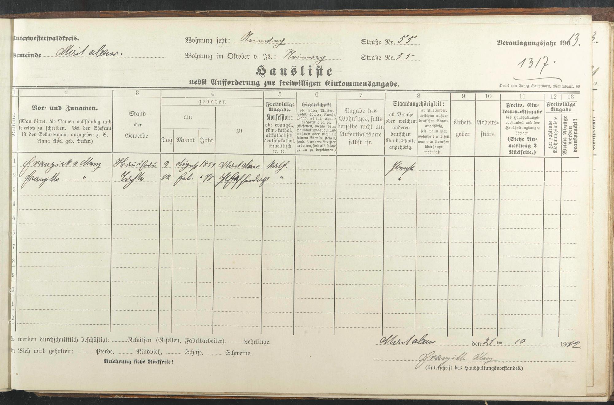 Haushaltsliste 1912 & 1913, Band II., Abt. 4, A 277