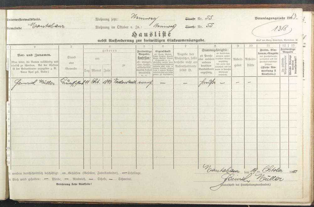 Haushaltsliste 1912/13, Sauertalstraße bis Werbhausgasse sowie Mühlen