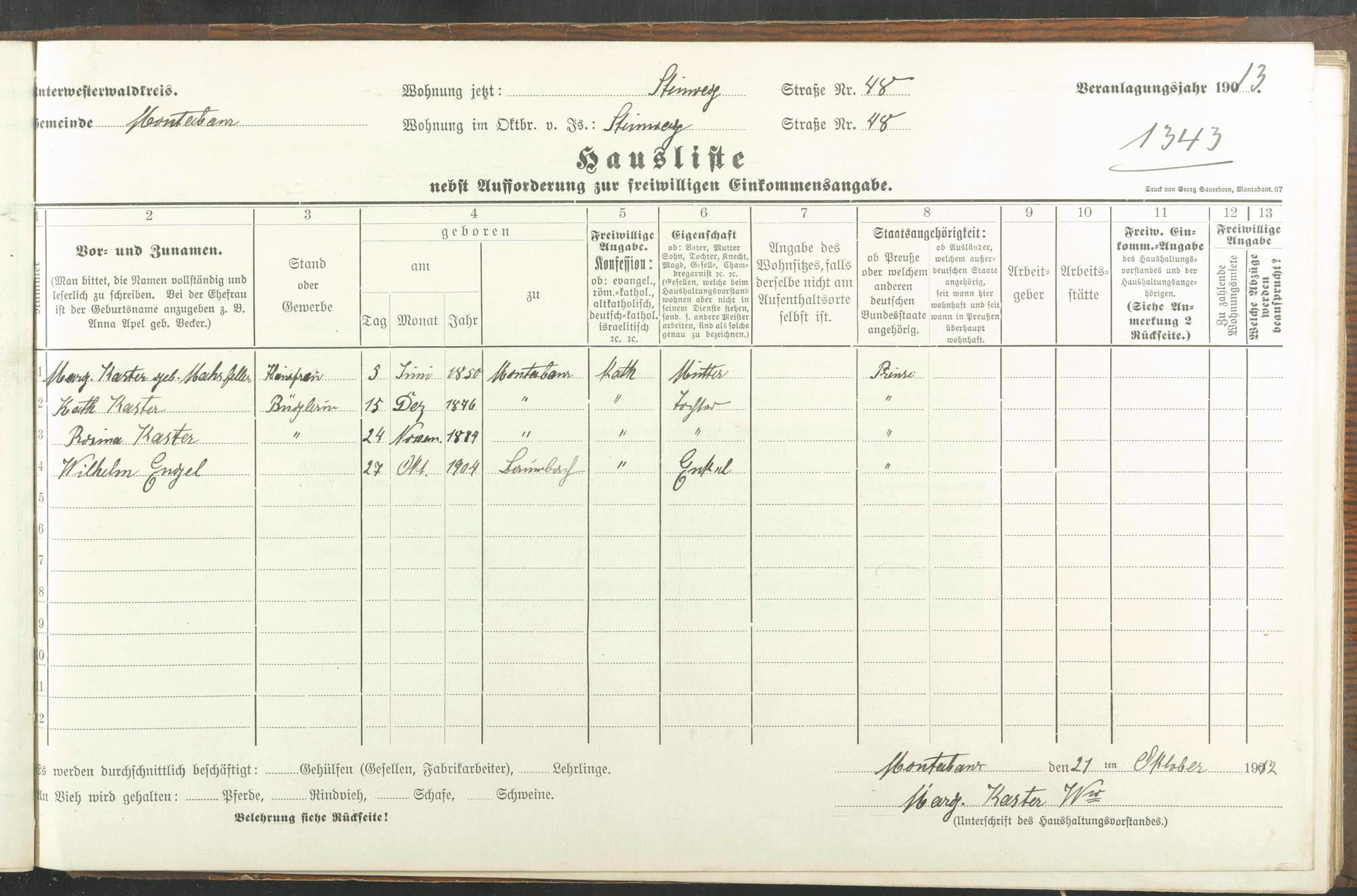 Haushaltsliste 1912 & 1913, Band II., Abt. 4, A 277