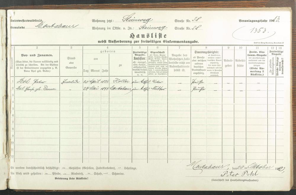 Haushaltsliste 1912 & 1913, Band II., Abt. 4, A 277