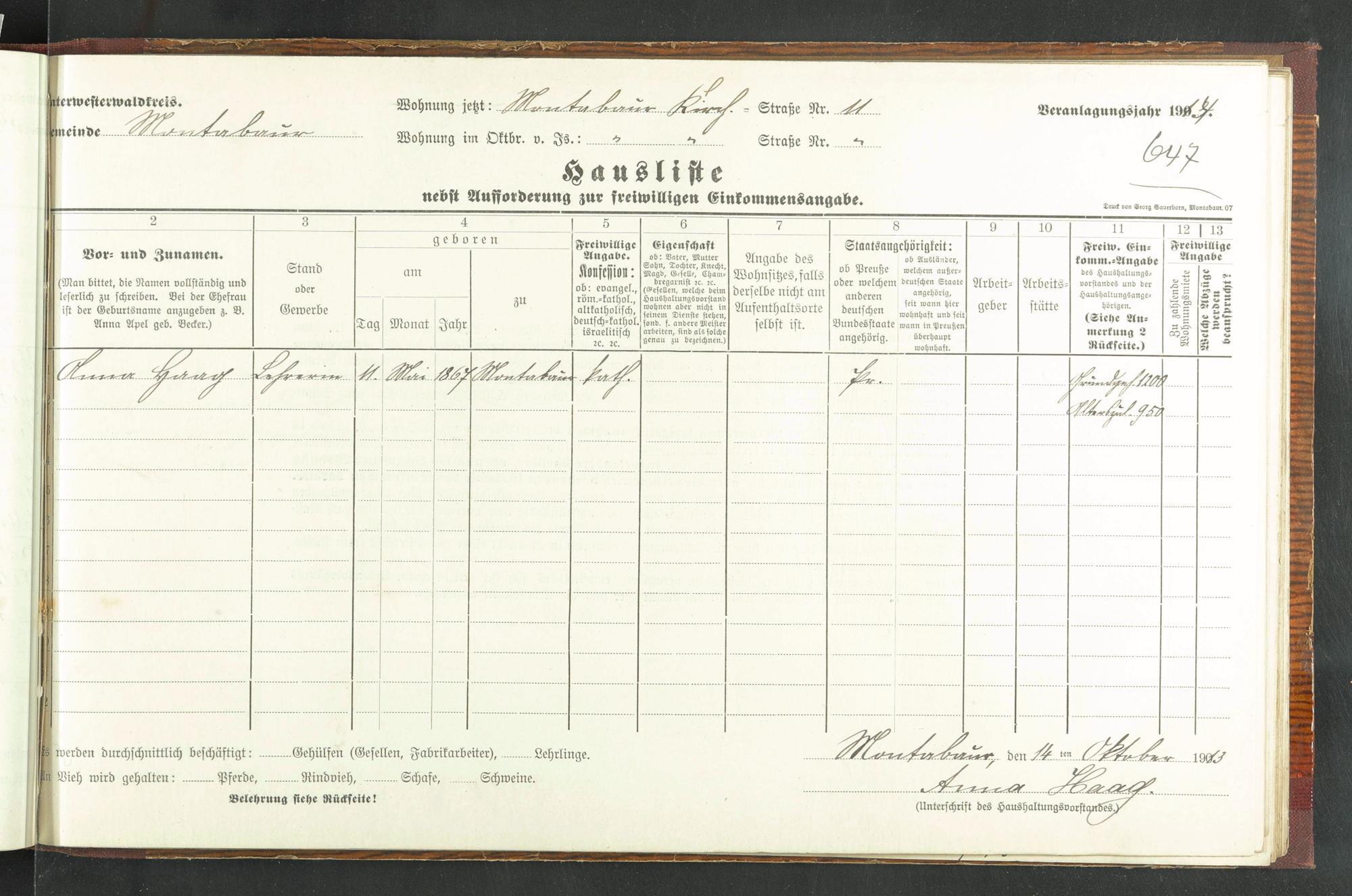 Haushaltsliste 1914, Band I., Abteilung 4, A 278