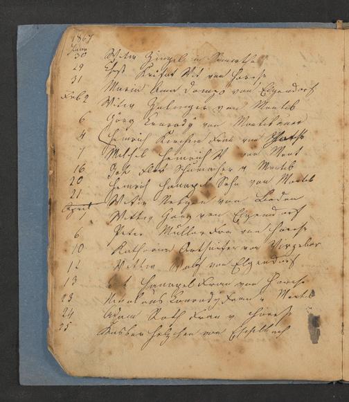 Zingel, […] Krifat, […] Domzo, Maria Anna Zulinger, […] Conrady, Görg Kirchem, […] Heinrich, […] Flak, Joh Hanapel, […] Nebgen, […] Gorg, […] Müller, […] Ortseifer, Katharina Wolf, […] Hanapel, […] Conrady, […] Roth, […] Helzchen, Kasber