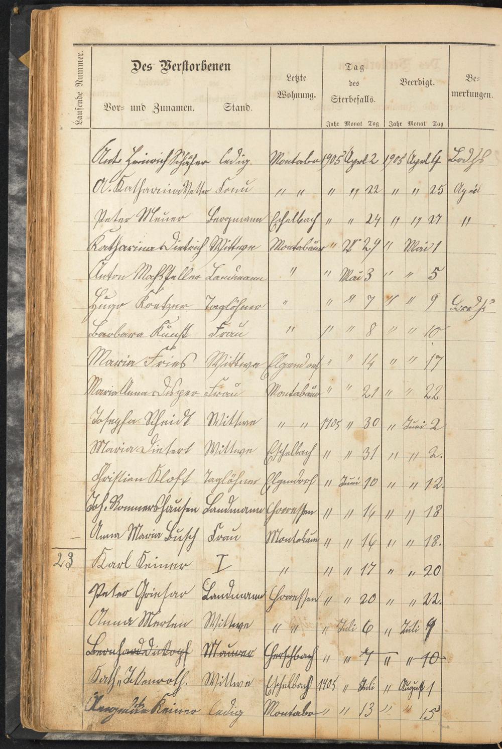 BRG 1882-1927, Abt. 4, A 253 Beerdigungsregister 1900 - 1909