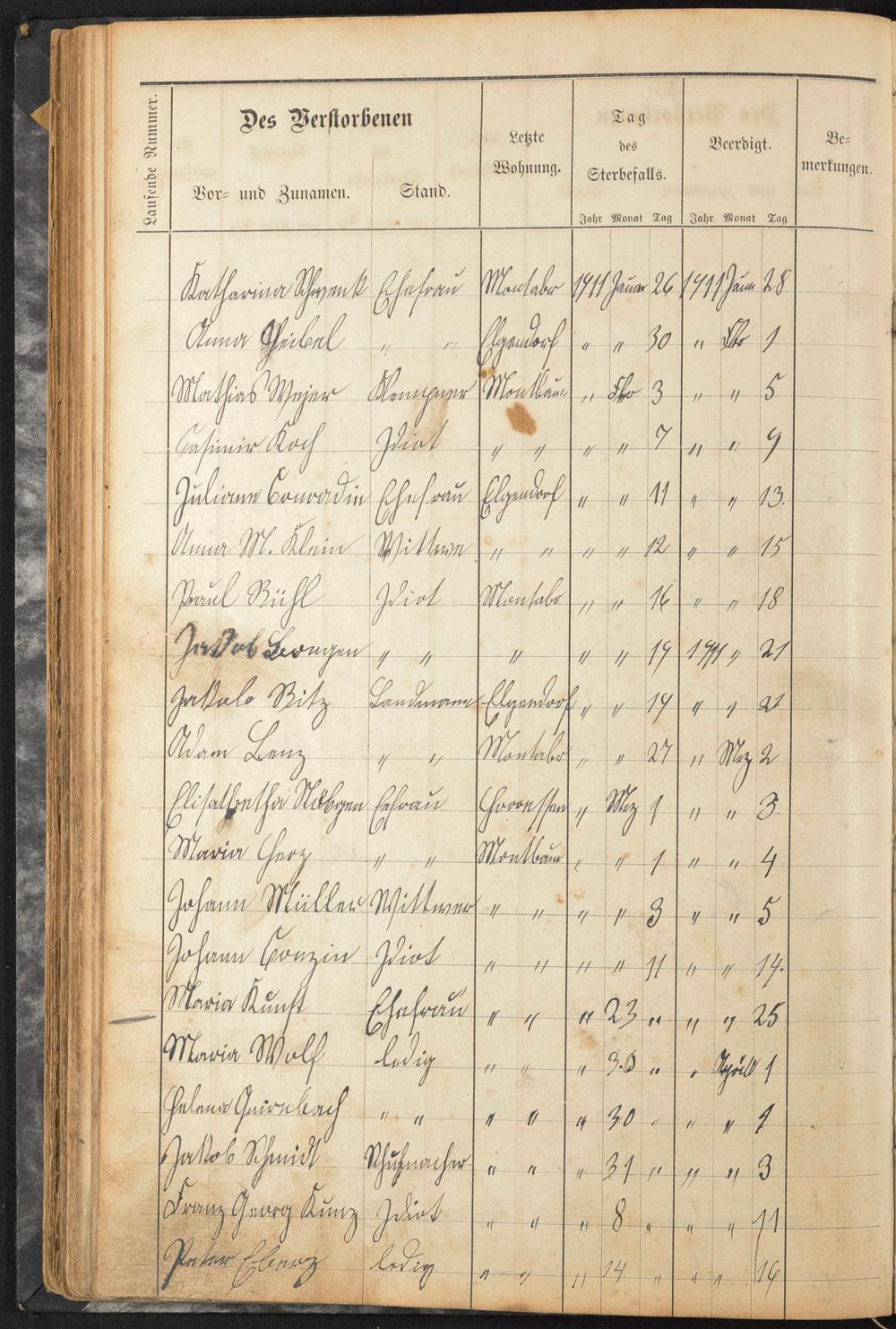 Schwenk, Katharina Heibel, Anna Weyer, Mathias Koch, Casimir Conradie, Juliane Klein, Anna M. Rühl, Paul Bongen, Jakob Ritz, Jakob Lenz, Adam Nöbgen, Elisabetha Herz, Maria Müller, Johann Conzin, Johann Kunst, Maria Wolf, Maria Qirnbach, Helena Schmidt, Jakob Kunz, Franz Georg Eberz, Peter