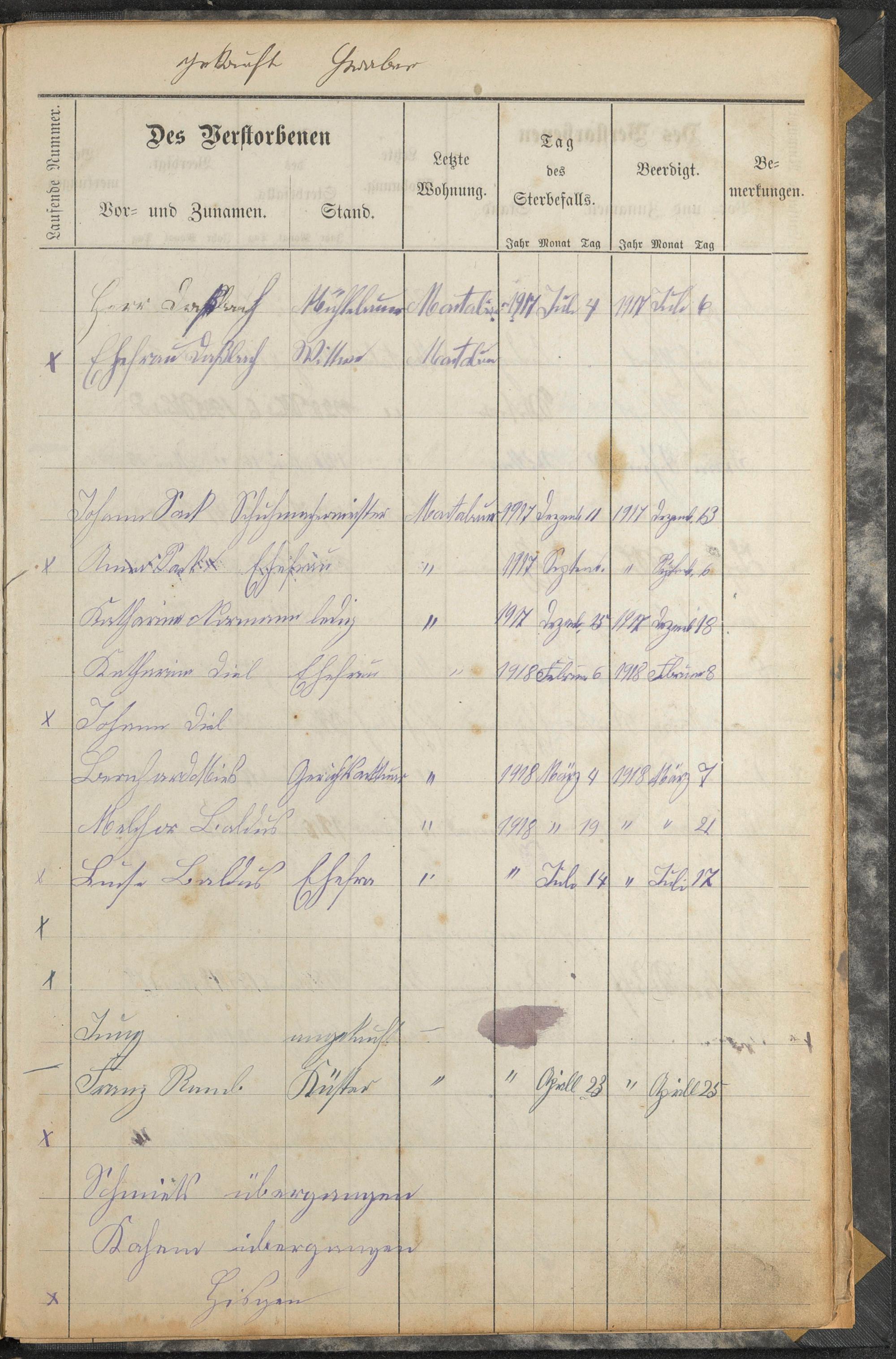 Beerdigungsregister 1910 - 1919