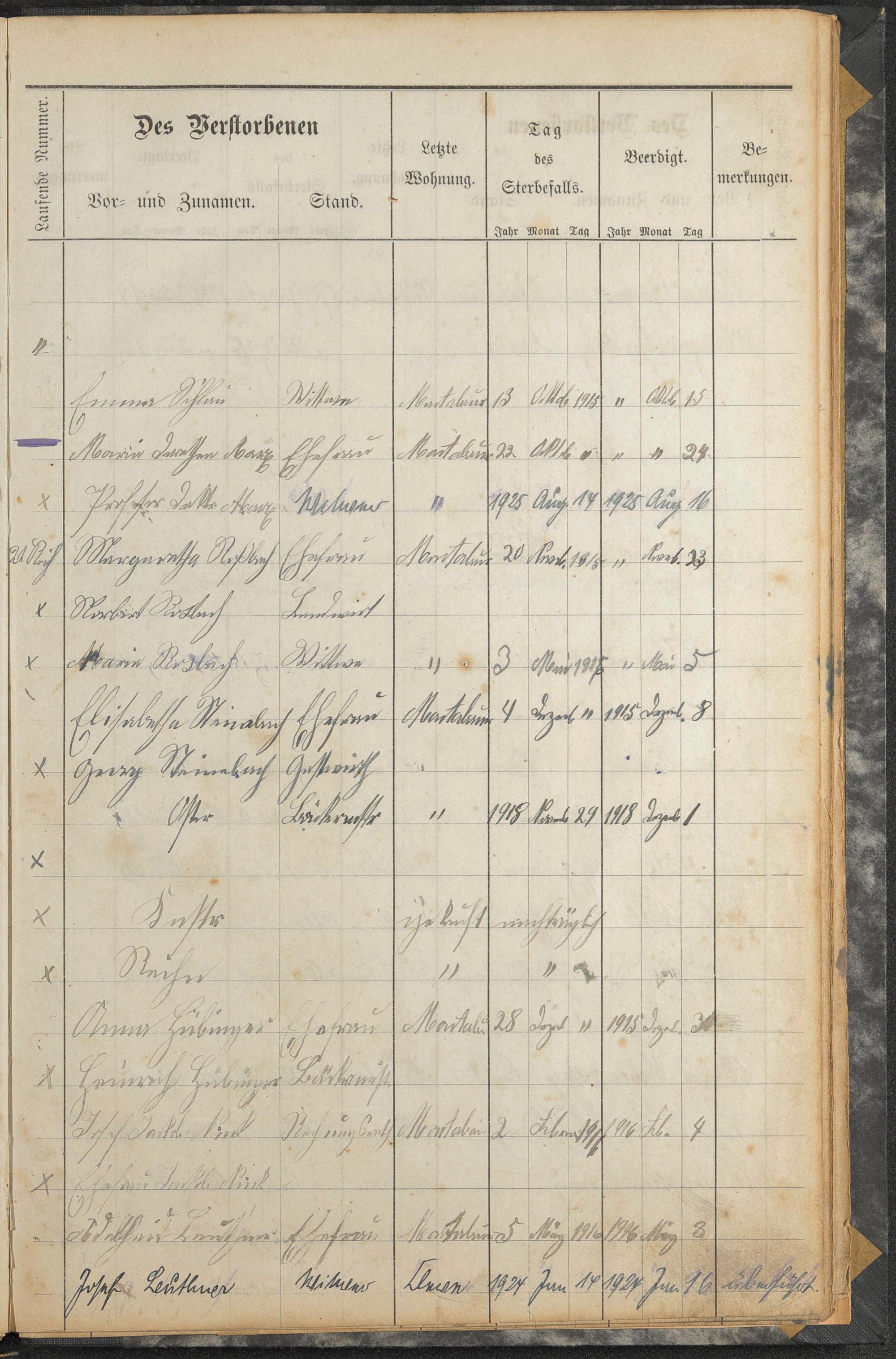 BRG 1882-1927, Abt. 4, A 253 Beerdigungsregister, Nachweis über Kaufgräber 1882 - 1927