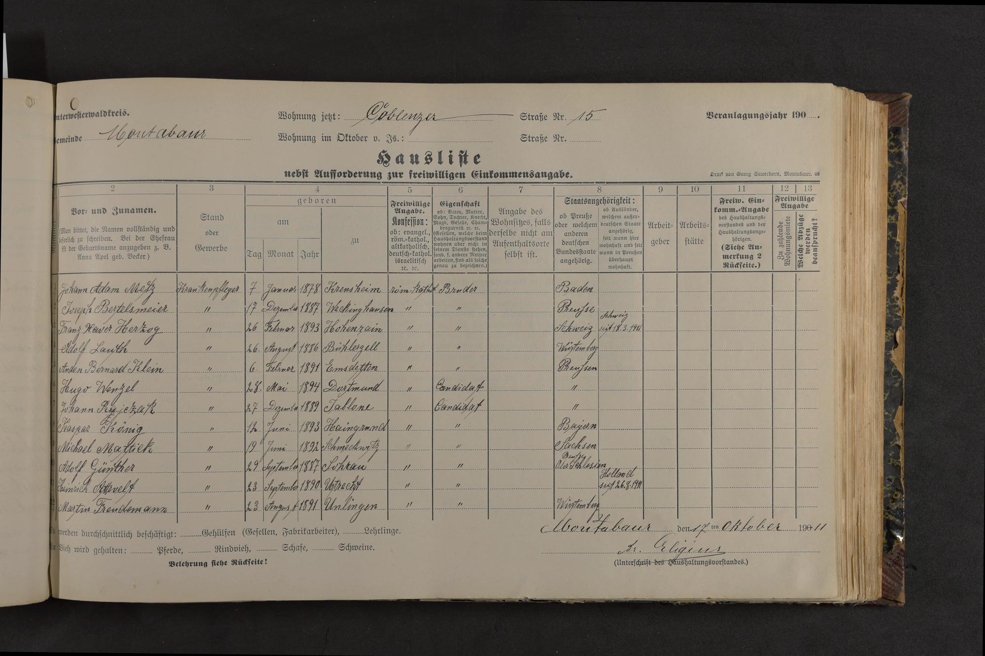 Haushaltsliste 1912, Band I. , Abteilung 4, A 274