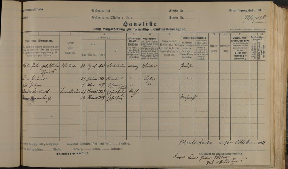 Haushaltsliste 1912, Band I. , Abteilung 4, A 274