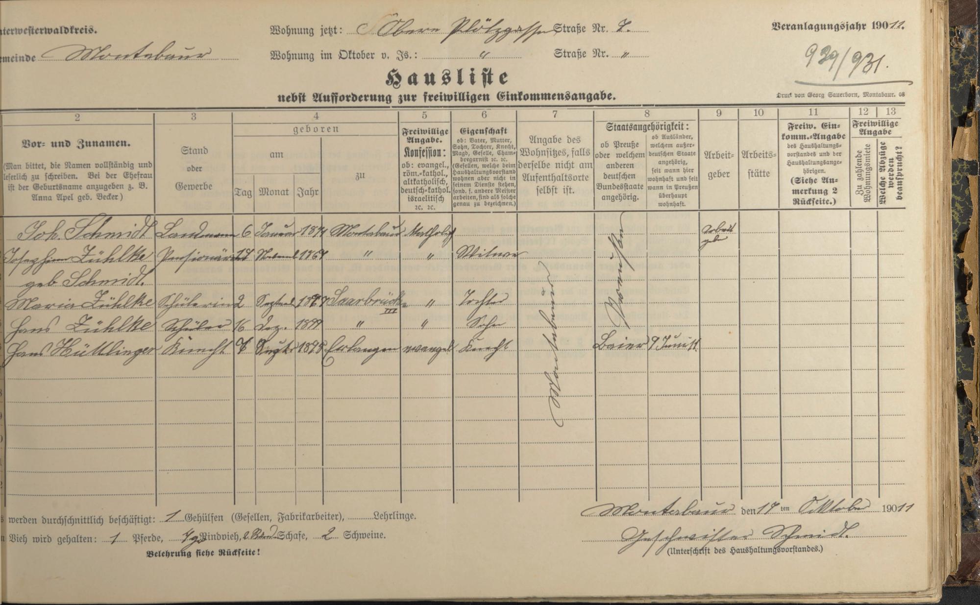 Haushaltsliste 1912, Band II., Abteilung 4, A 275