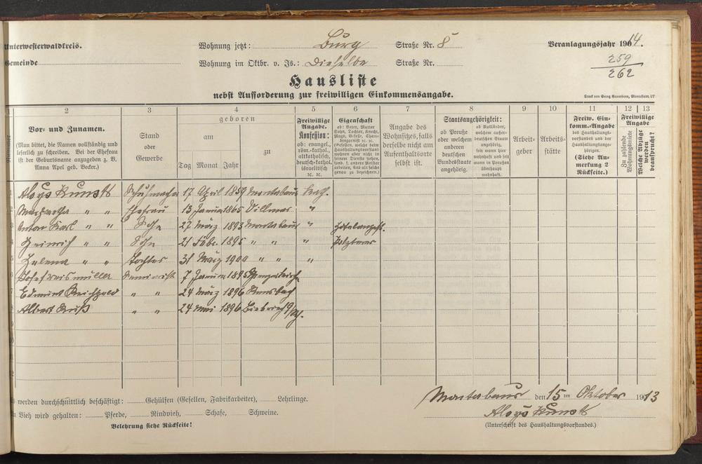 Haushaltsliste 1914, Band I., Abteilung 4, A 278