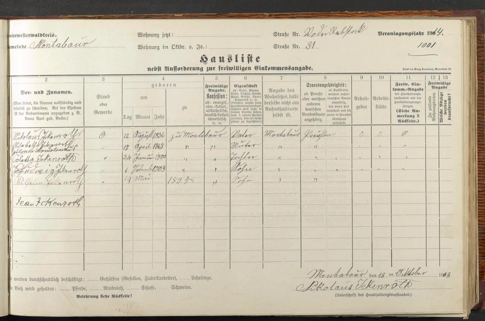 Haushaltsliste 1914, Band II., Abteilung 4, A 279