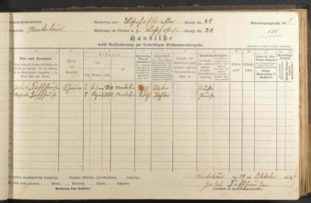 Haushaltsliste 1914/15, Kirchstraße bis Markt