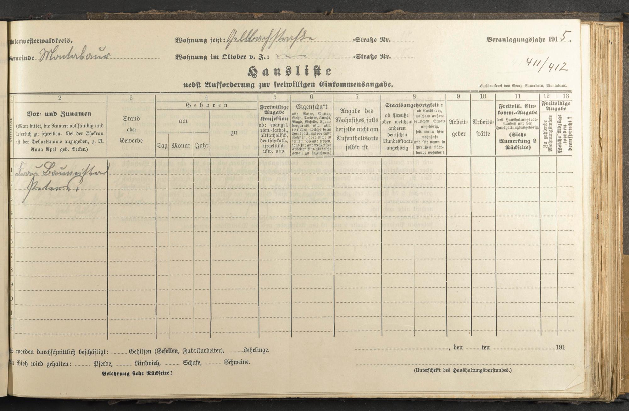 Haushaltsliste 1915, Band I., Abteilung 4, A 280