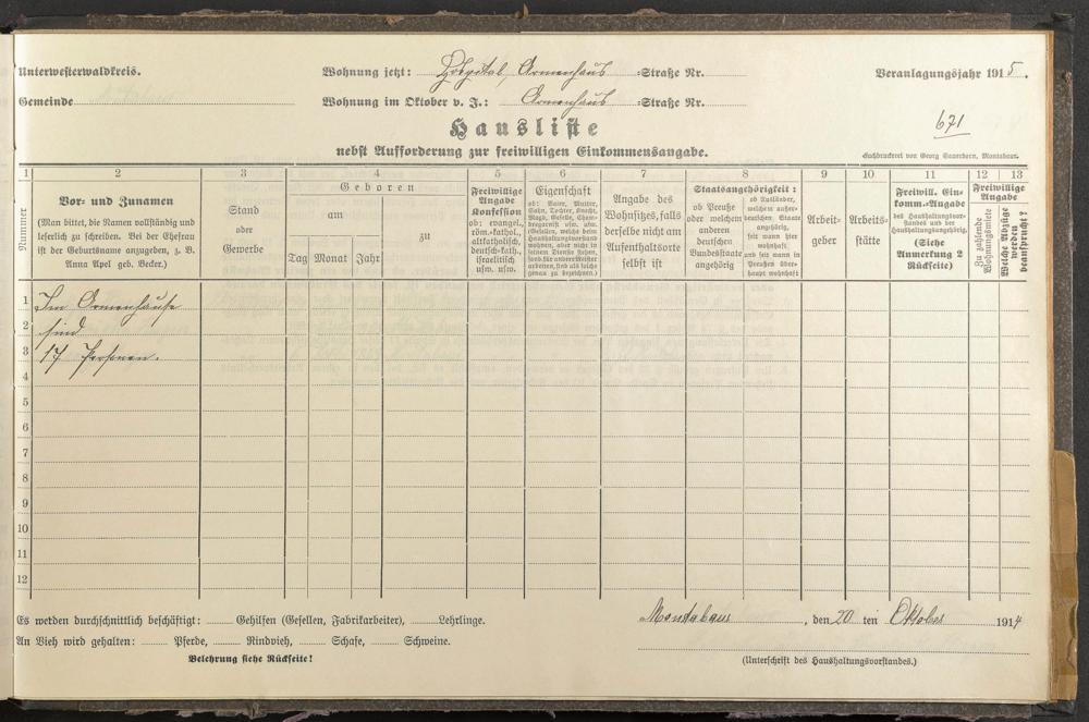 Haushaltsliste 1915, Band I., Abteilung 4, A 280