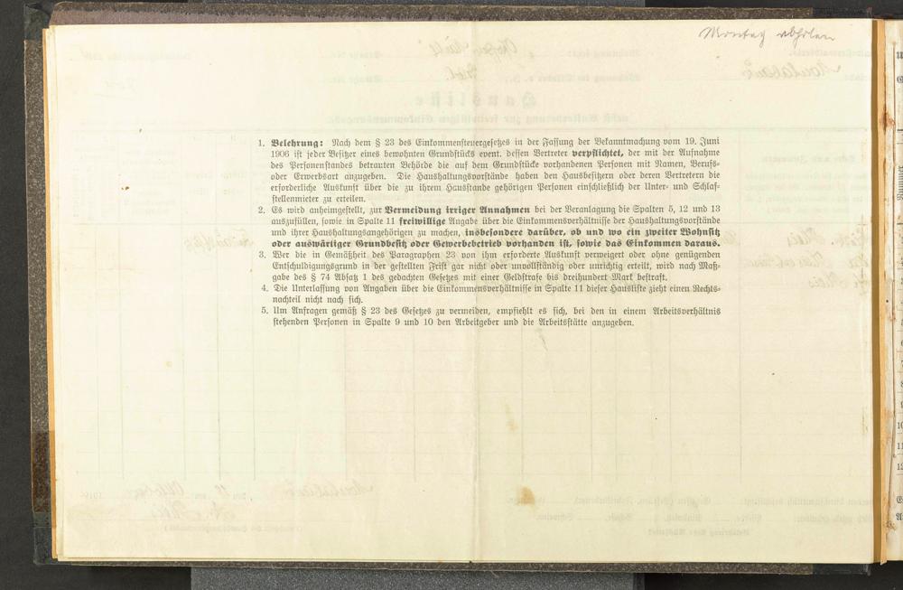 Haushaltsliste 1914/15, Kirchstraße bis Markt