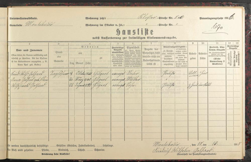 Haushaltsliste 1915/16, Kaiserstraße bis Markt