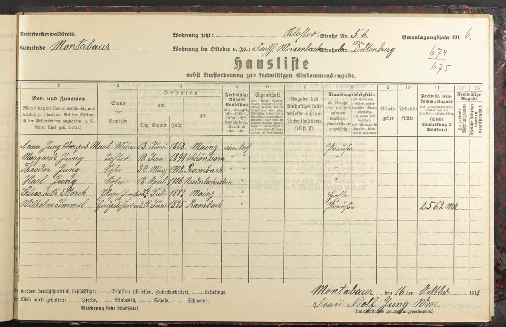 Haushaltsliste 1915/16, Kaiserstraße bis Markt