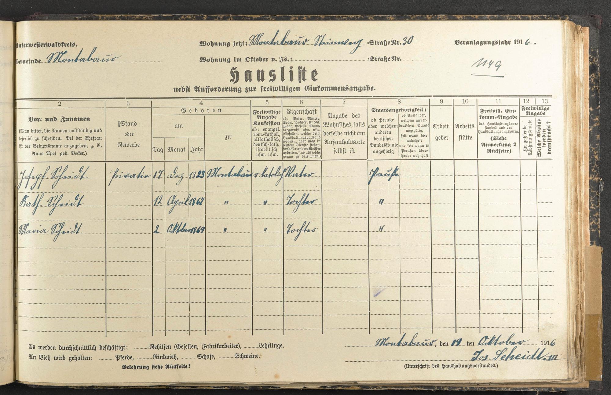 Haushaltsliste 1917, Band II., Abteilung 4, A 285