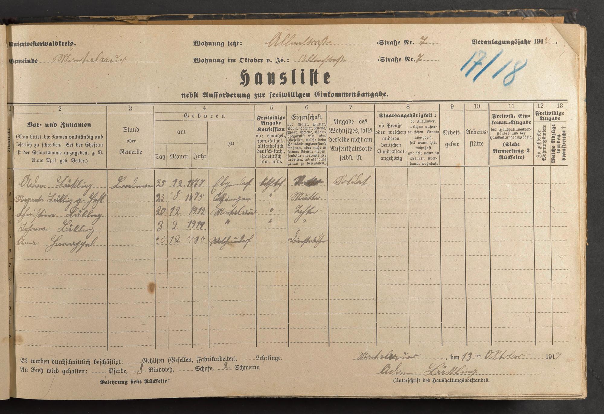 Haushaltsliste 1917/18, Albertstraße bis Burgstraße