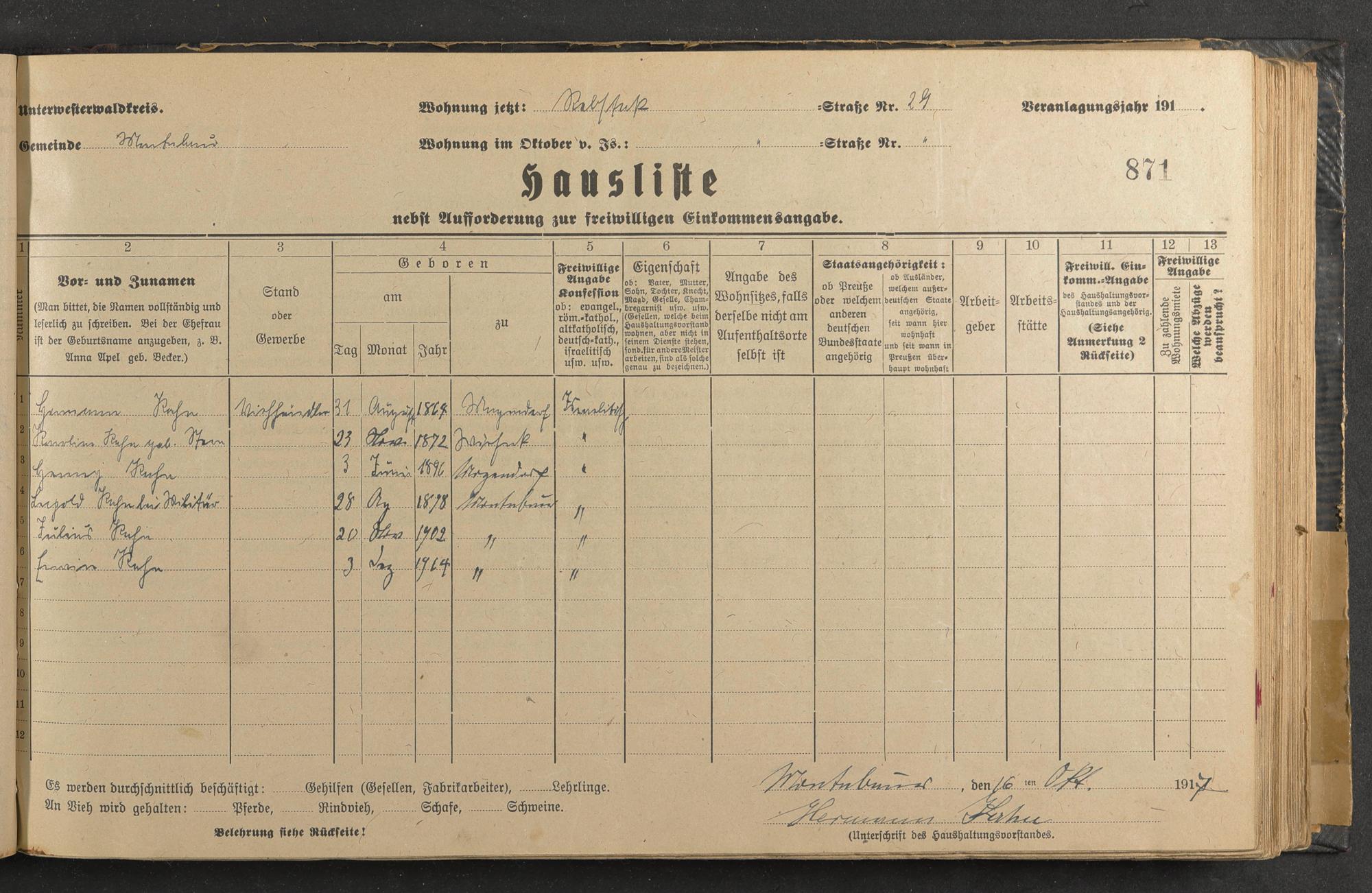 Haushaltsliste 1917-1918, Band II., Abteilung 4, A 287