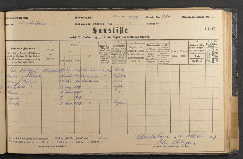 Haushaltsliste 1917-1918, Band II., Abteilung 4, A 287