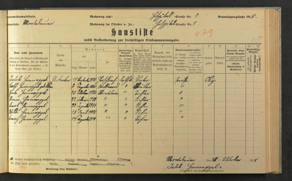 Haushaltsliste 1918, Kaiserstraße bis Markt