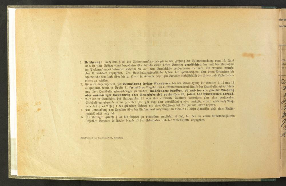 Haushaltsliste 1918, Sauertalstraße bis Werbhausgasse sowie Mühlen