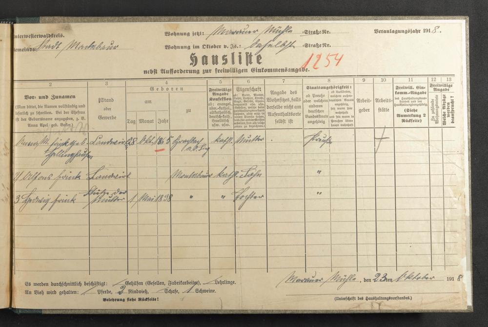 Haushaltsliste 1918, Abt. 4, A 289, Großer Markt bis Marauer Mühle