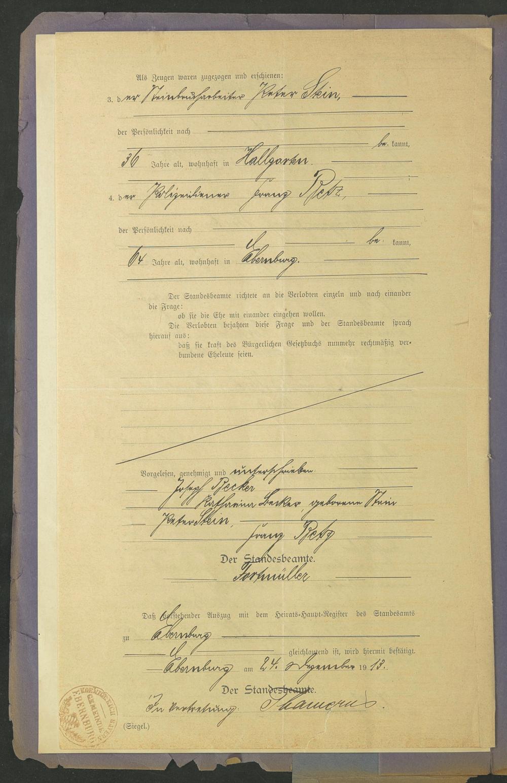 Akten betreffend Heiratsregister 1913