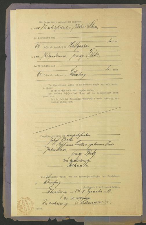 Akten über Heiratsregister 1912
