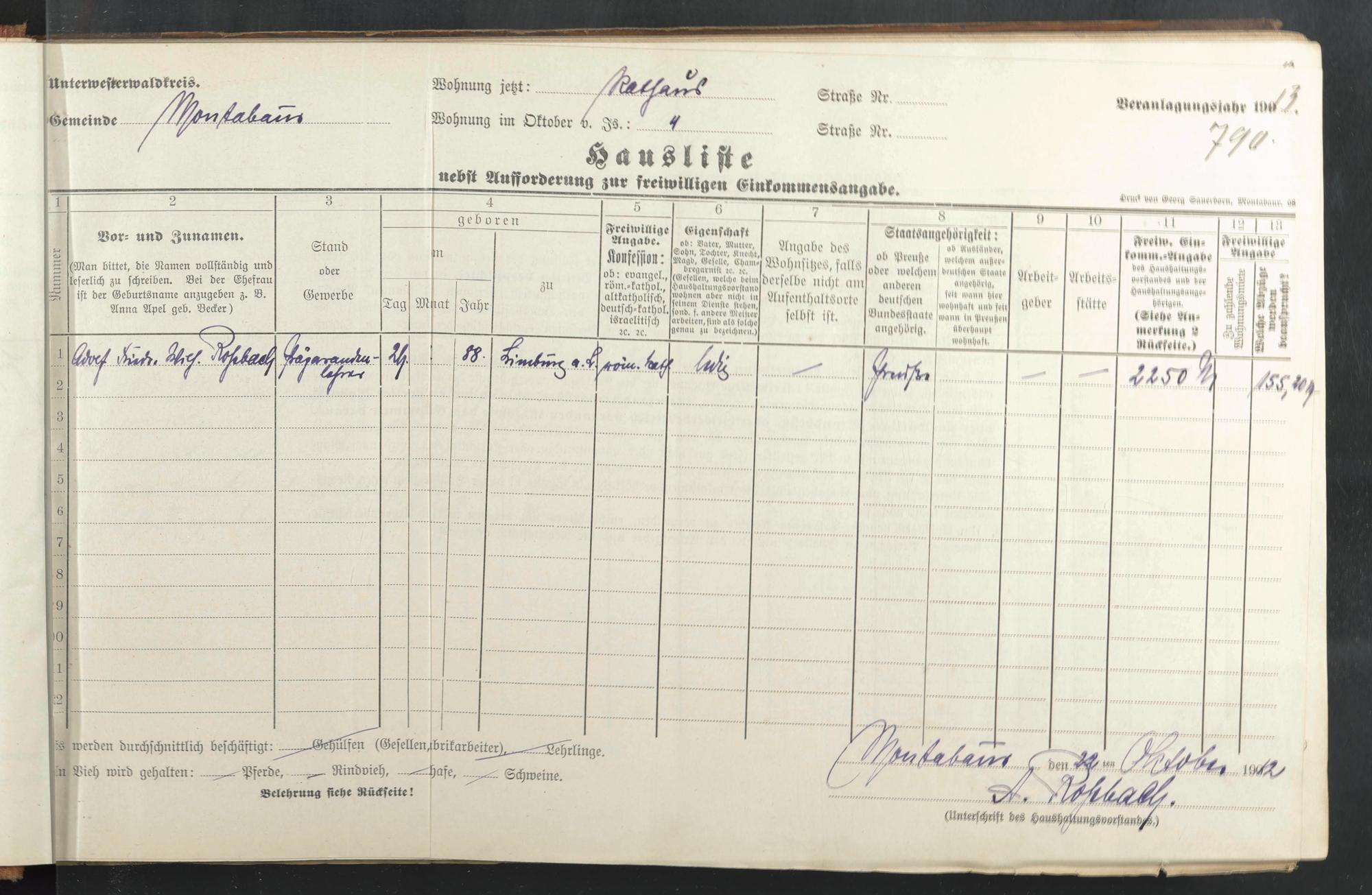 Haushaltsliste 1912 & 1913, Band I., Abt. 4 A 276