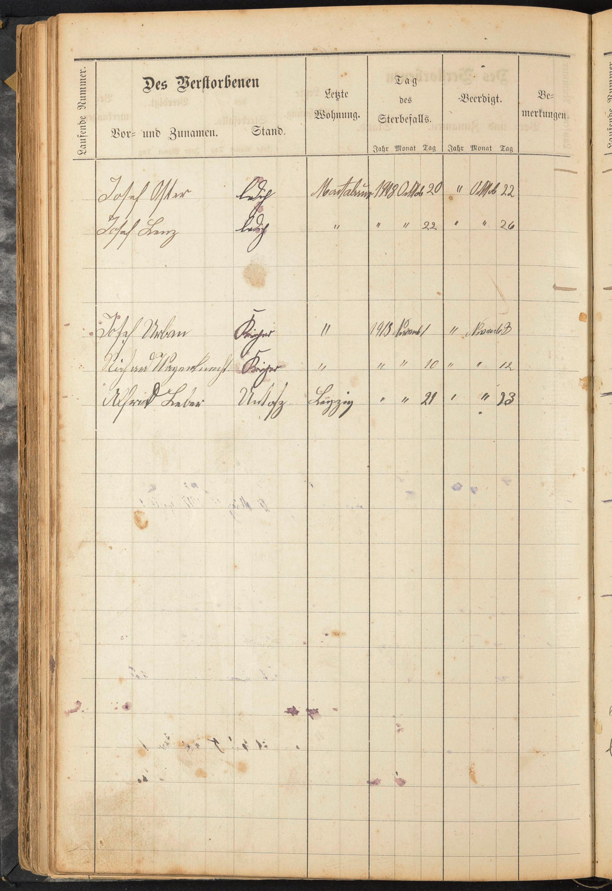 Beerdigungsregister 1920 - 1927