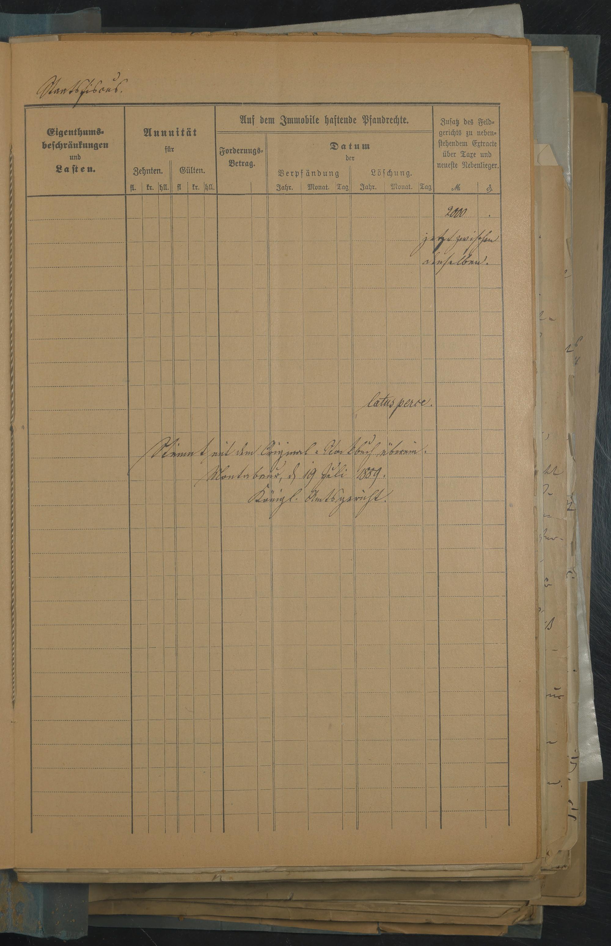 Auszug aus dem Duplikat des Stockbuches Juli 1889; Vermessungsurkunde November 1888; Vermessung der Katasterparzellen