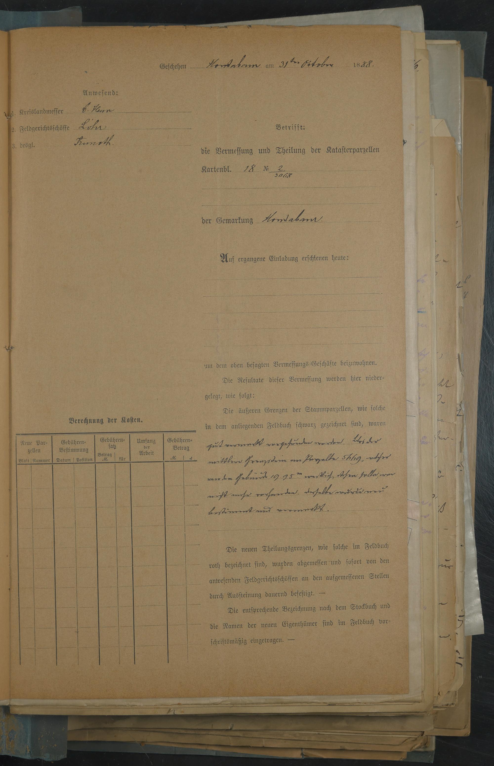 Auszug aus dem Duplikat des Stockbuches Juli 1889; Vermessungsurkunde November 1888; Vermessung der Katasterparzellen